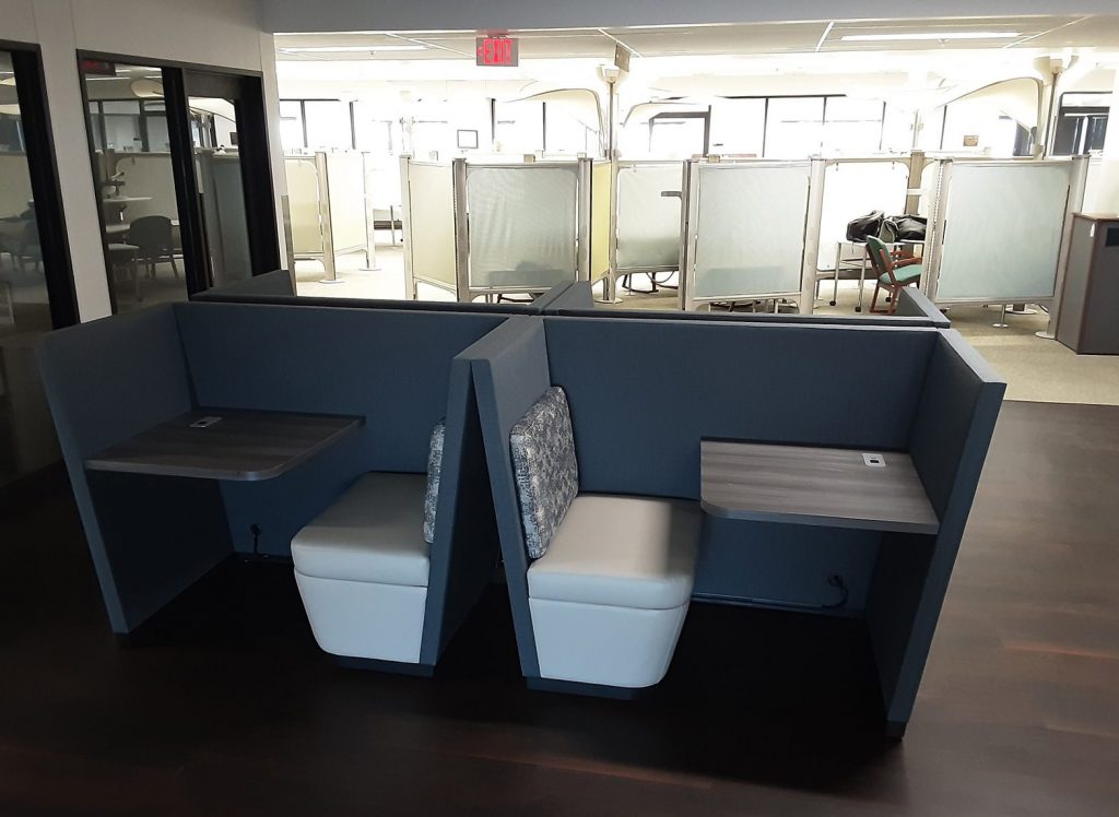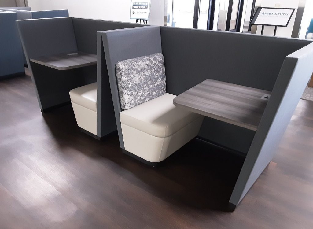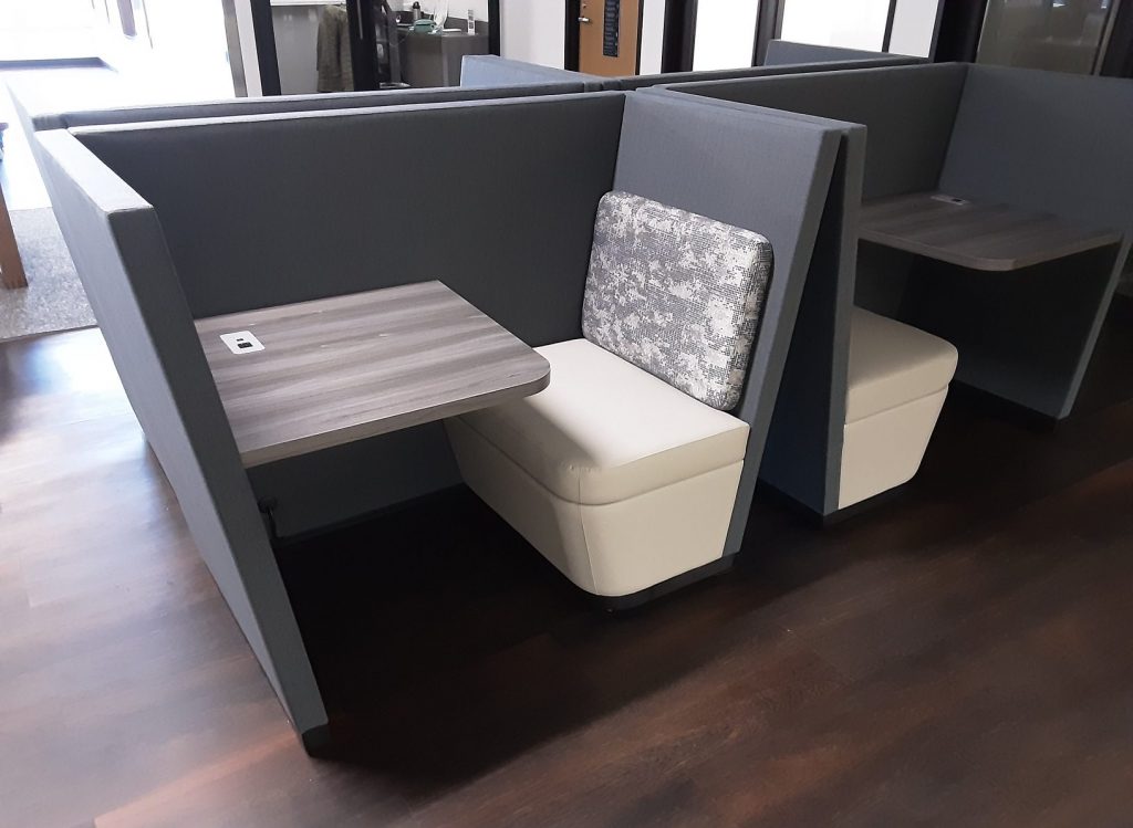 - Modules standard with 27″ high integrated table.