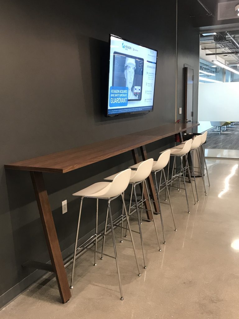 - 1-1/2” top thickness for rectangle tables, and 1-1/4” for wall-mount and sidebar tables.