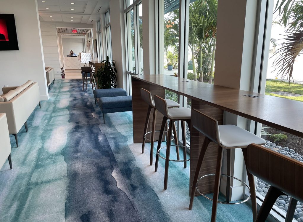 - Tables feature upholstered body with three top surface options: veneer, laminate or Corian®.