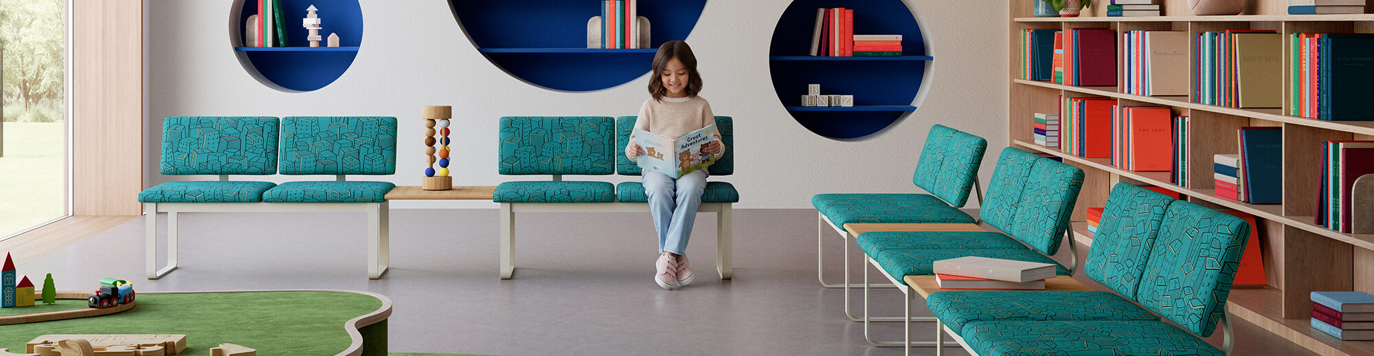 Our children’s furniture is designed to spark imagination and bring comfort to young minds, fostering areas that encourage learning and play. Each piece is crafted with the same attention to detail and quality as their full-sized adult counterparts, ensuring a cohesive and inviting environment. Versatile enough for educational, recreational, and healthcare applications, all models adapt to various needs while maintaining a playful, consistent look. Learn how our children's furniture can transform any space into an engaging and creative setting.